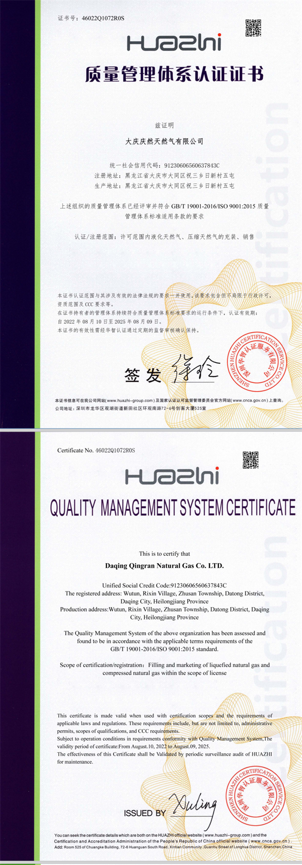 質(zhì)量管理體系認(rèn)證證書